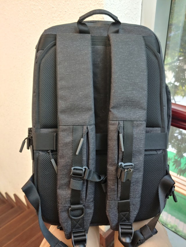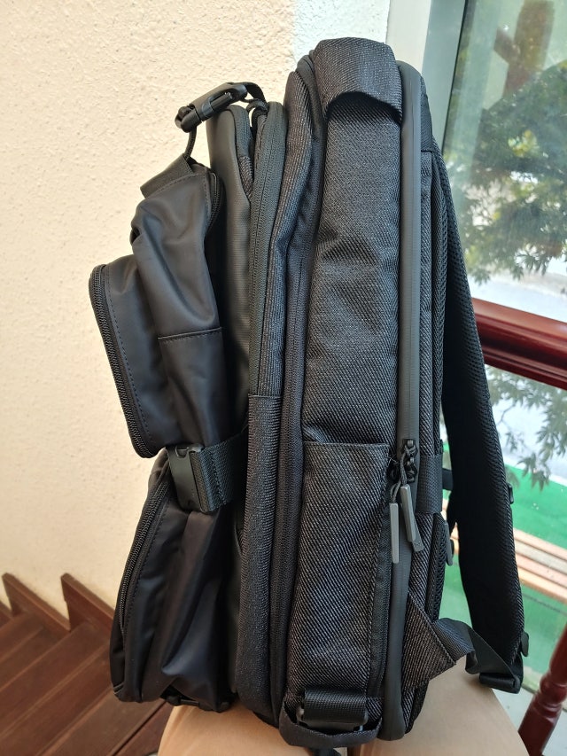 평소에 사용하면서 가끔 여행용으로도 쓸만한 가방을 찾다가 예전에 구입한 PN7과 같이 사용할 용도로 구입했습니다. 재질과 마감도 마음에 들고 디자인도 무난합니다. 수납용량도 확장이 가능하고요. 잘 사용하지 않을 것 같은 끈들만 잘 정리해서 안 보이게 해놨더니 깔끔합니다.